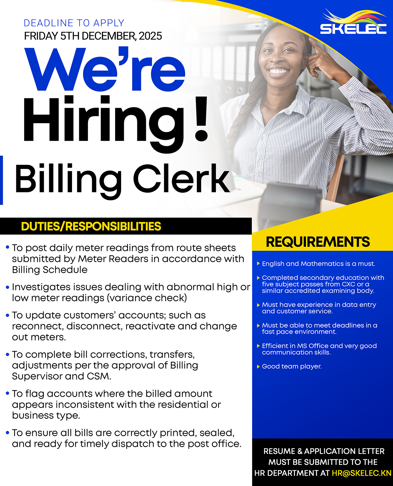 #SKELEC #CareerOpportunity #WeAreHiring #BillingClerk